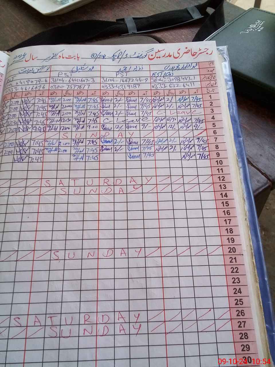 | CNIC | Full Name | Designation | R/C | Absence During Last Calender Month |