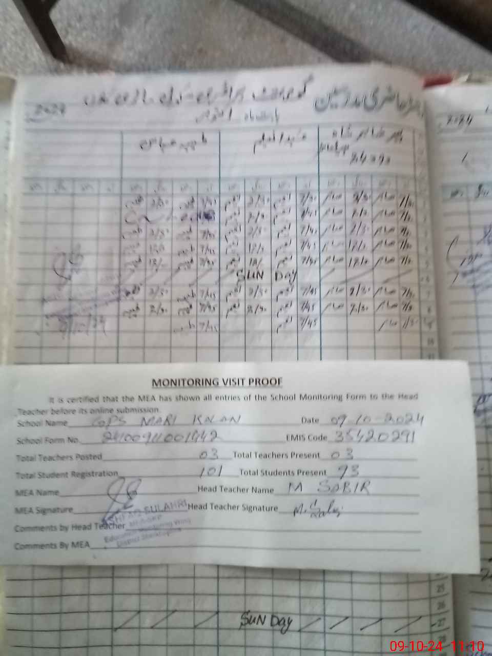 | Monitoring Date: 09-10-2024 | Start Time: 09-10-2024 10:33 AM | End Time: 09-10-2024 11:14 AM | Name of MEA: Mu**** As**** | |