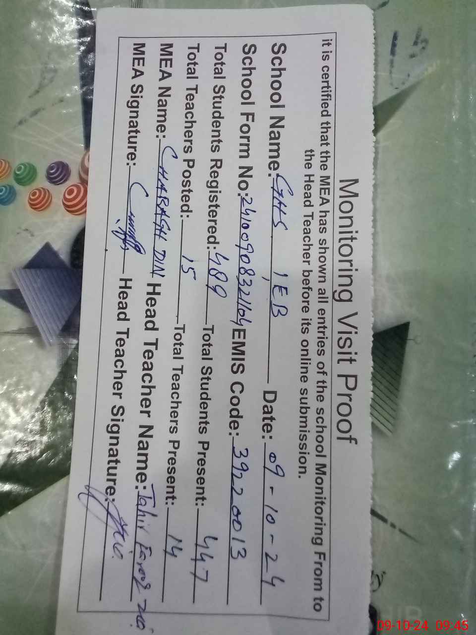 | EMIS Code: 39220013 | Name of School: GHS 1-EB | |||