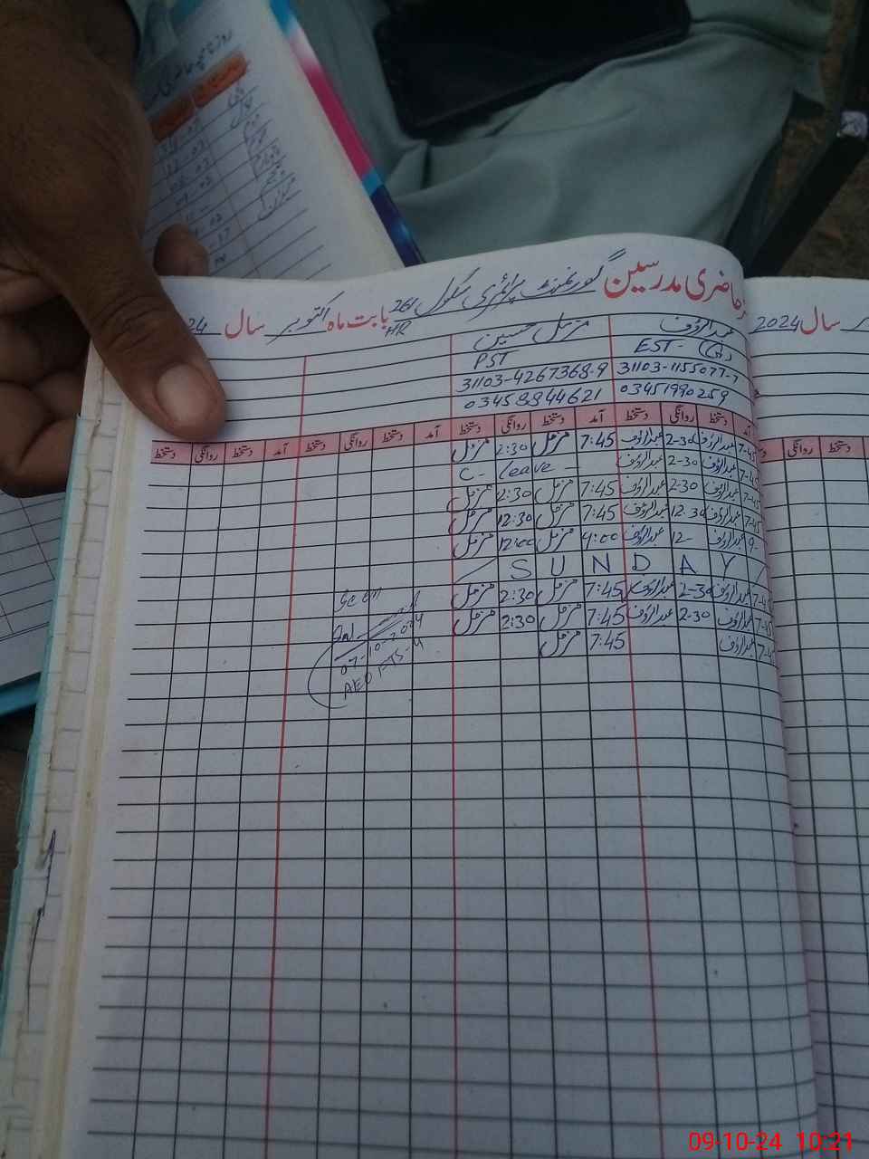 | Name: AB**** RA**** Designation: (School Headmaster's/Headmistress's) PST Phone/Cell Number: 03**** |