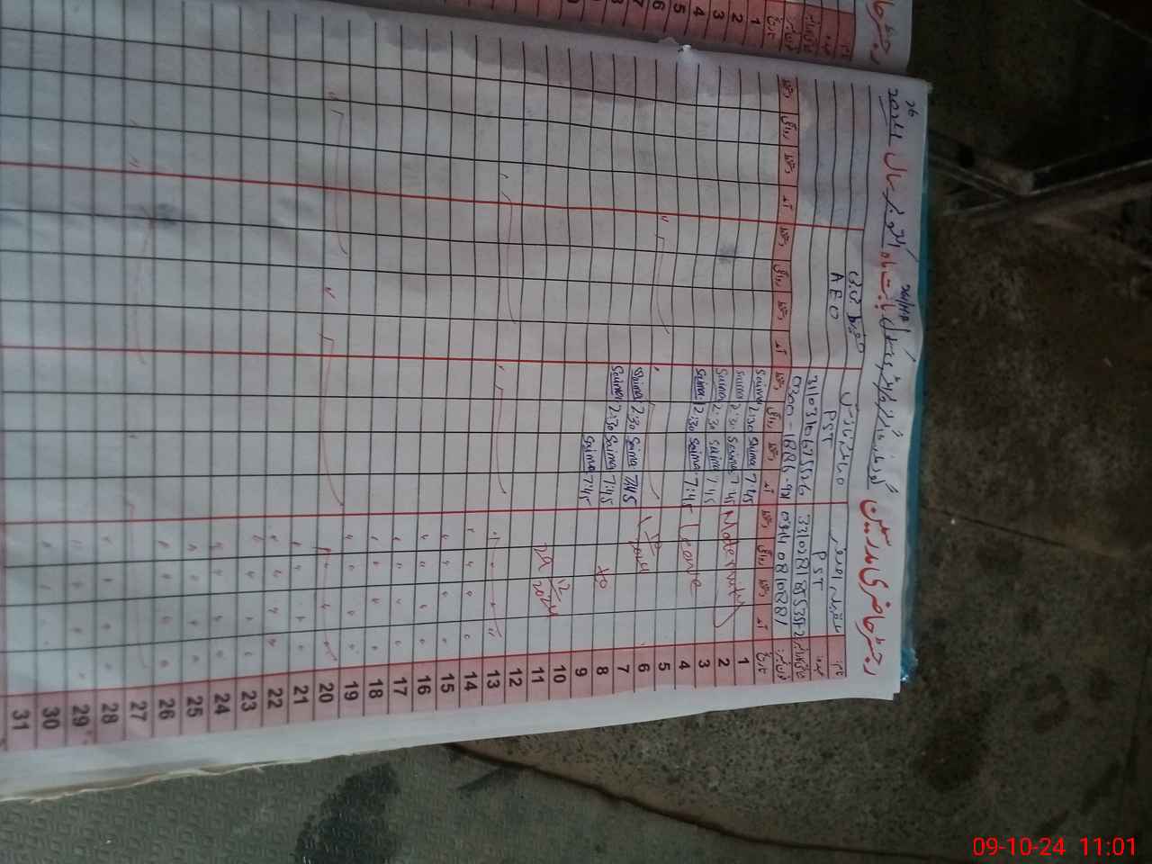 | CNIC | Full Name | Designation | R/C | Absence during last cal. month |