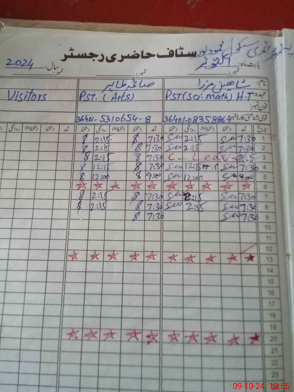 | Name: SH**** MI**** Designation: (School Headmaster's/Headmistress's) PST Phone/Cell Number: 03**** |
