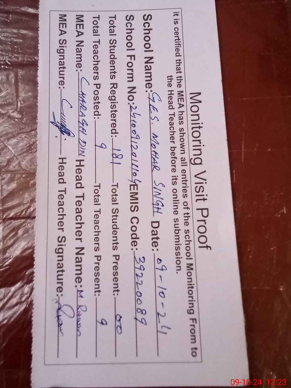 | EMIS Code: 39220089 | Name of School: GES MOHER SINGH ARIFWALA | |||