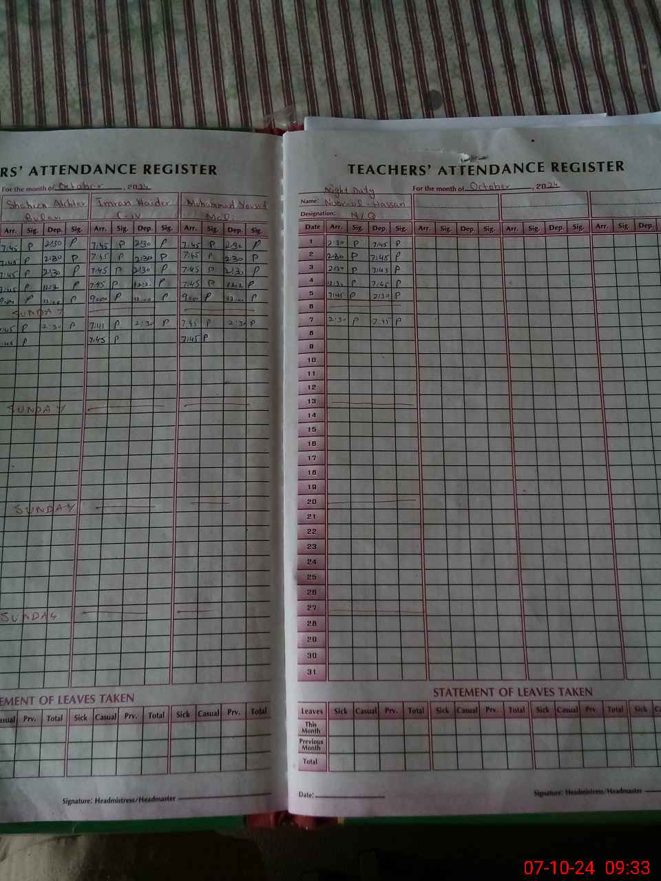 | 38**** | Na**** Ak**** | EST | Regular | 0 | 0 | 0 | 0 | 0 | 0 | 0 | 0 | 0 | Absent (Un-Authorized) |