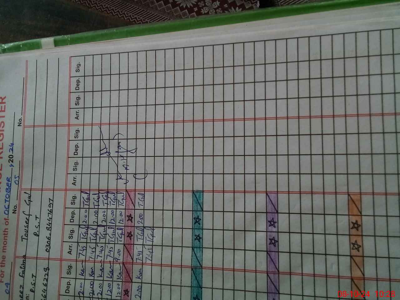 | CNIC | Full Name | Designation | R/C | Absence during last cal. month |