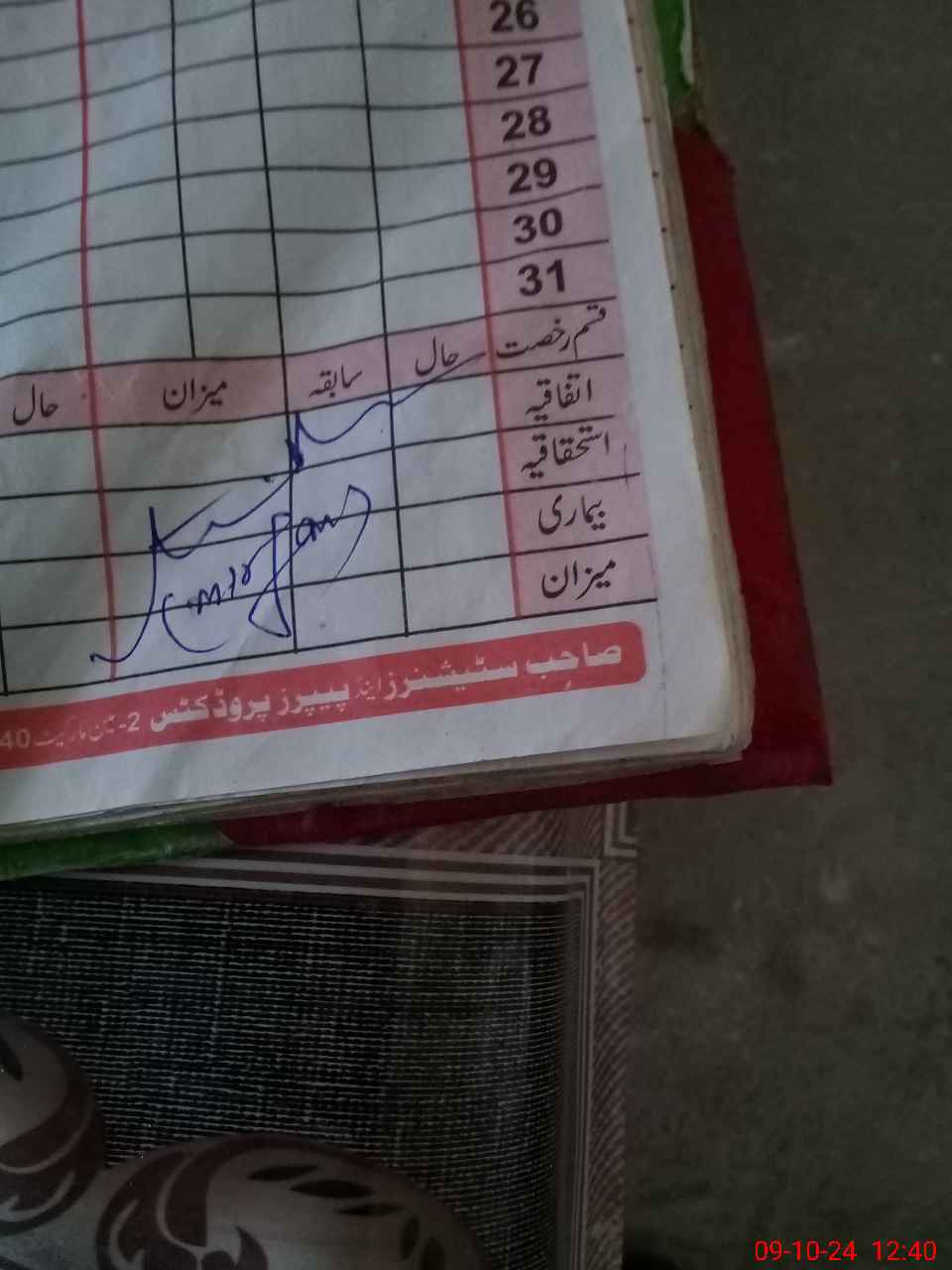 | Leave | Duty | Absent | Maternity | Medical | Ex- Pak |