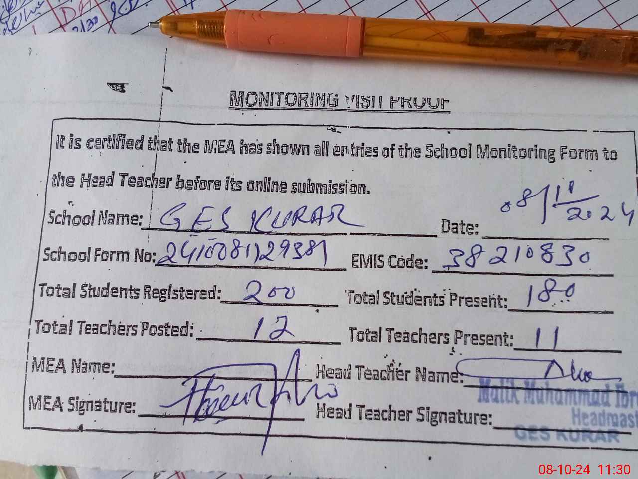 | EMIS Code: 38210830 | Name of School: GES KURAR | |||