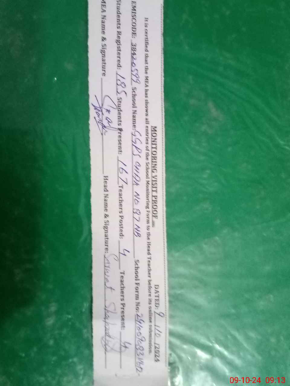 | EMIS Code: 38420599 | Name of School: GGPS CHAK NO.87 NB BIG SARGODHA | |||