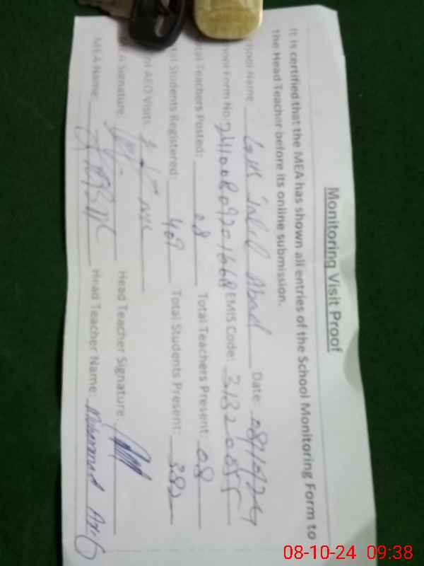 | Certified that this School was Inspected by the Undersigned MEA/DMO Today and the Information Stated Above is as Per Record. | |||||