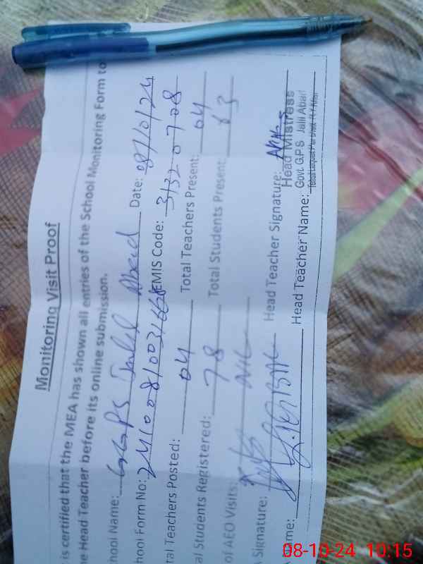 | Attendance Register | Head Teacher | MEA with School | Visit Proof |