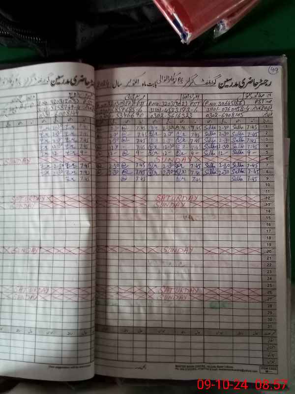 | CNIC | Full Name | Designation | R/C | Absence During Last Calender Month |