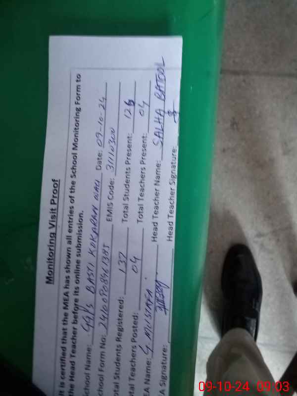 | Attendance Register | Head Teacher | MEA with School | Visit Proof |