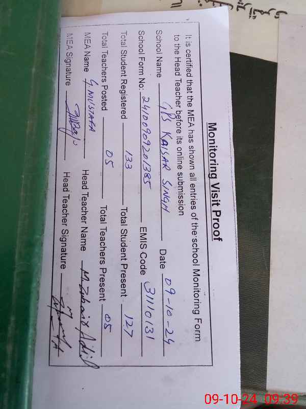 | EMIS Code: 31110131 | Name of School: GPS KASIR SINGH | |||