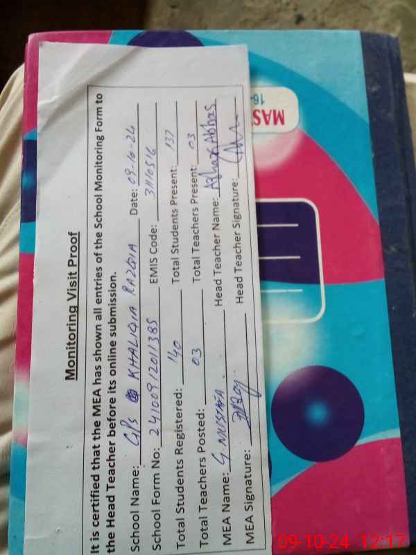 | EMIS Code: 31110516 | Name of School: GPS KHALIQA RAZIQIA | |||