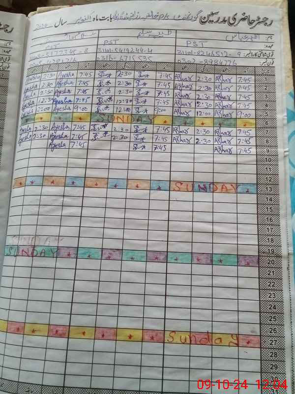| Name: Az**** Ab**** Designation: (School Headmaster's/Headmistress's) PST Phone/Cell Number: 03**** |