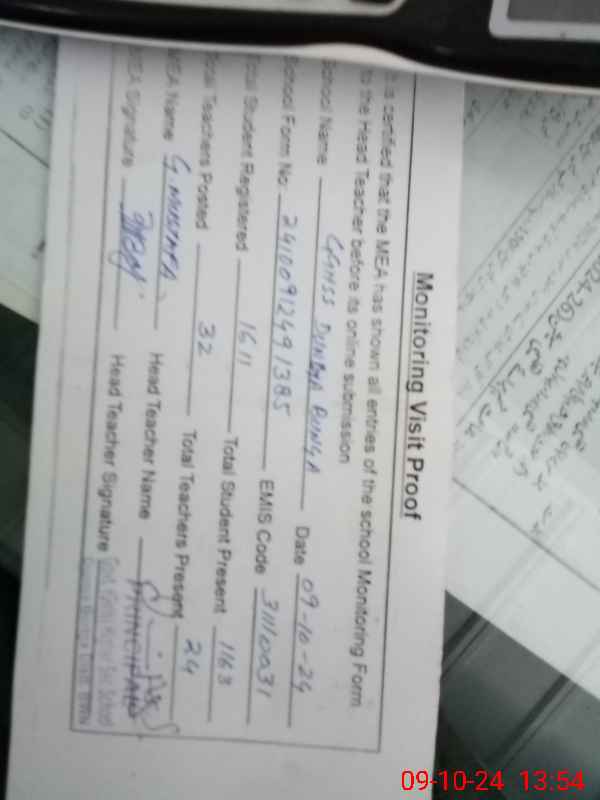 | Attendance Register | Head Teacher | MEA with School | Visit Proof |