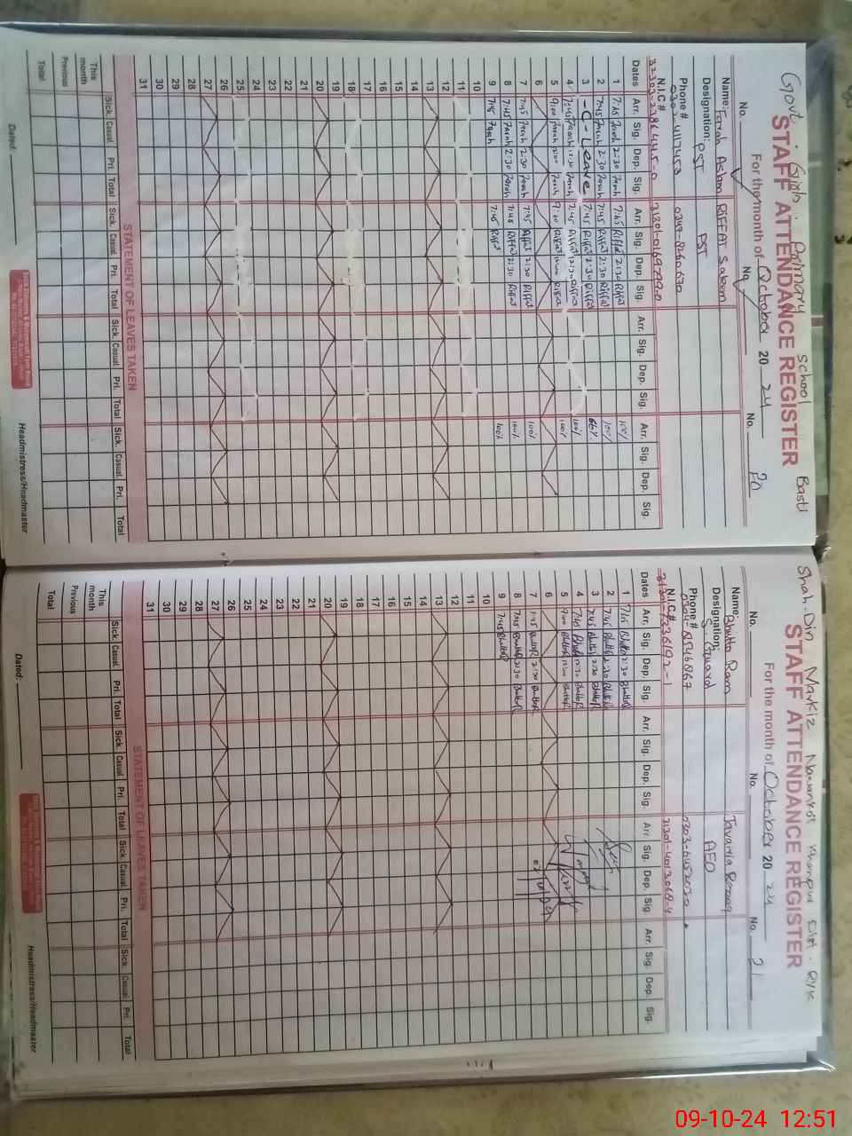 | Name: FA**** AS**** Designation: (School Headmaster's/Headmistress's) PST Phone/Cell Number: 03**** |