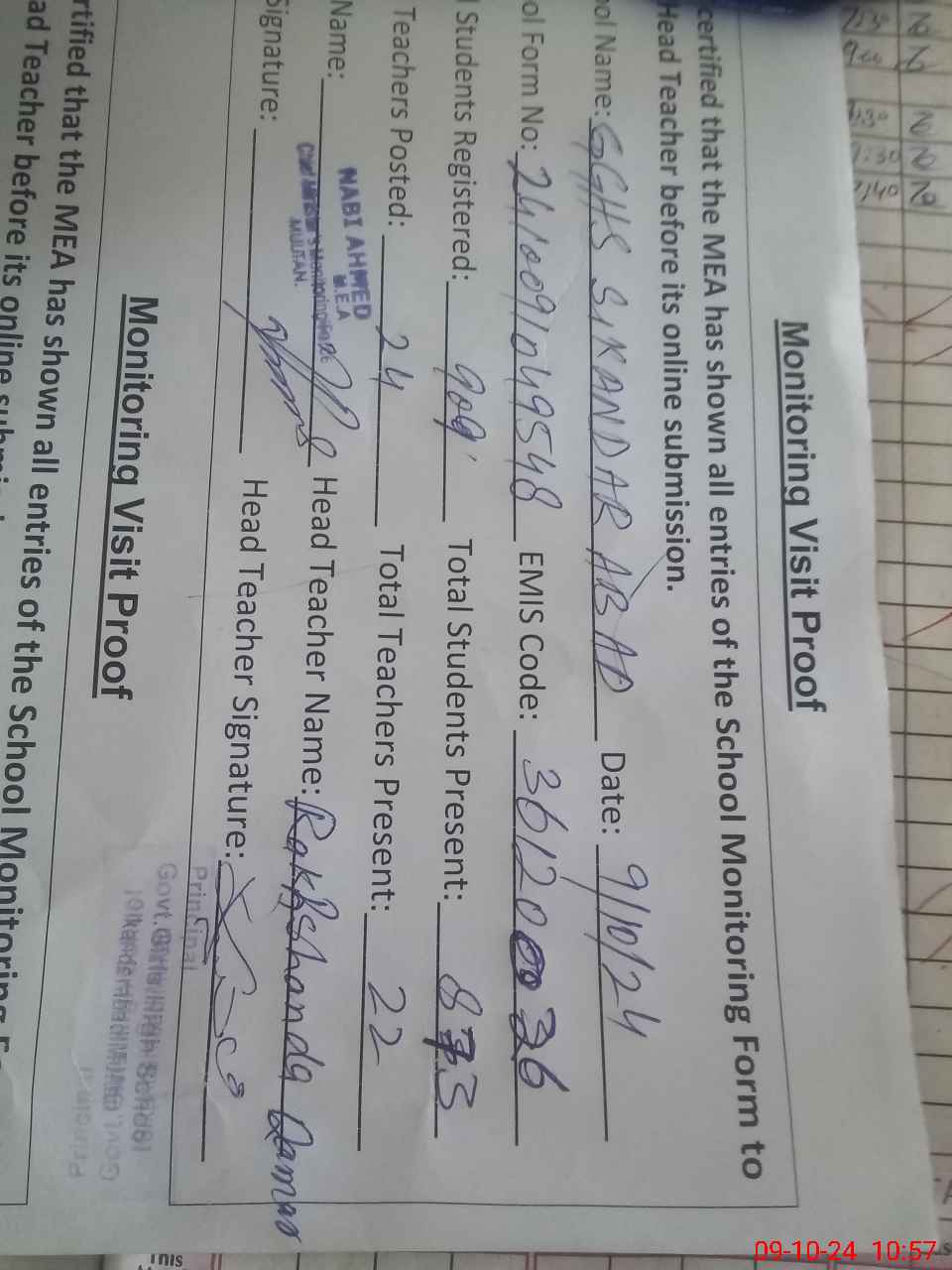 | EMIS Code: 36120026 | Name of School: GGHSS SIKANDAR ABAD SHUJABAD | |||