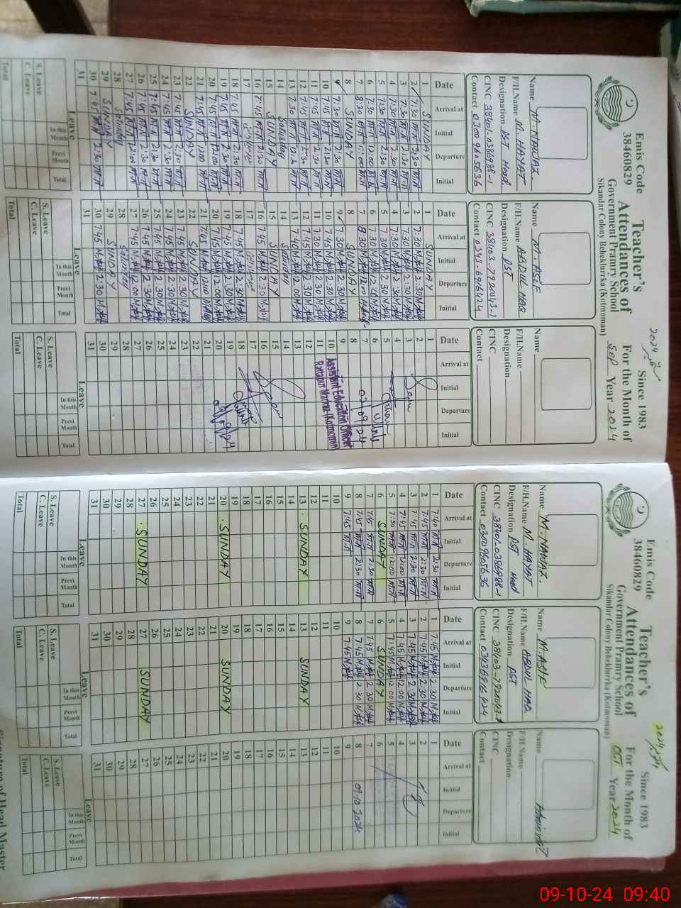 | Name: MU**** NA**** Designation: (School Headmaster's/Headmistress's) PST Phone/Cell Number: 03**** |