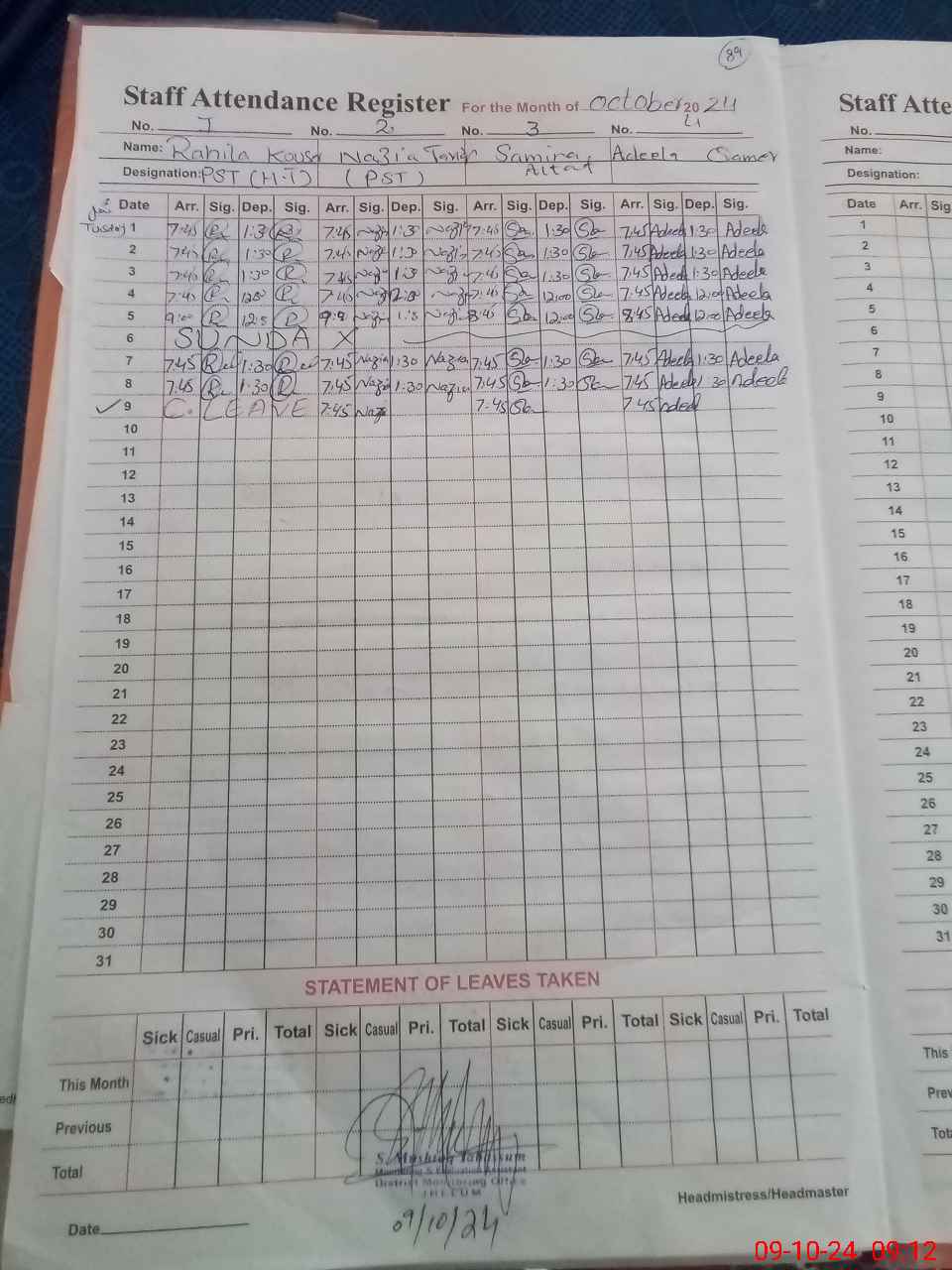 | Name: Na**** Ta**** Designation: (School Headmaster's/Headmistress's) PST HT Phone/Cell Number: 03**** |