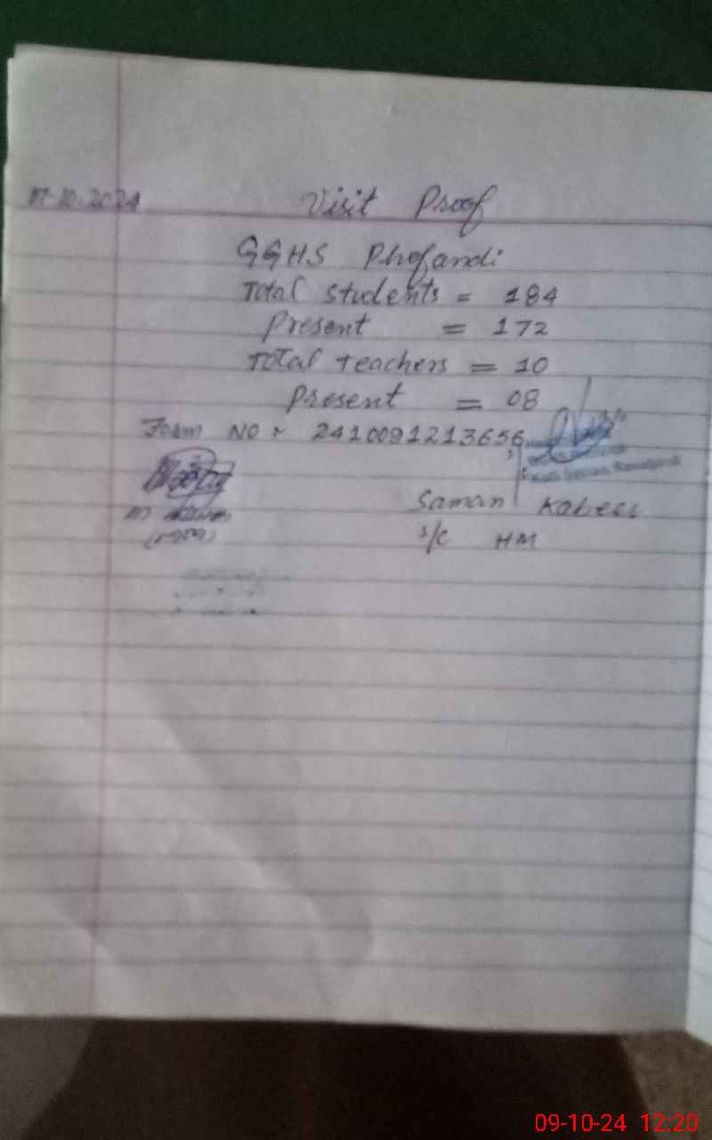 | EMIS Code: 37350132 | Name of School: GGHS PHOFHANDI | |||