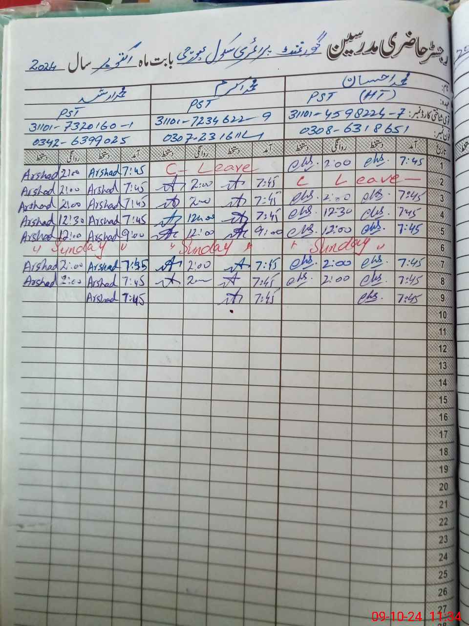 | Name: MU**** Ih**** Designation: (School Headmaster's/Headmistress's) PST Phone/Cell Number: 03**** |