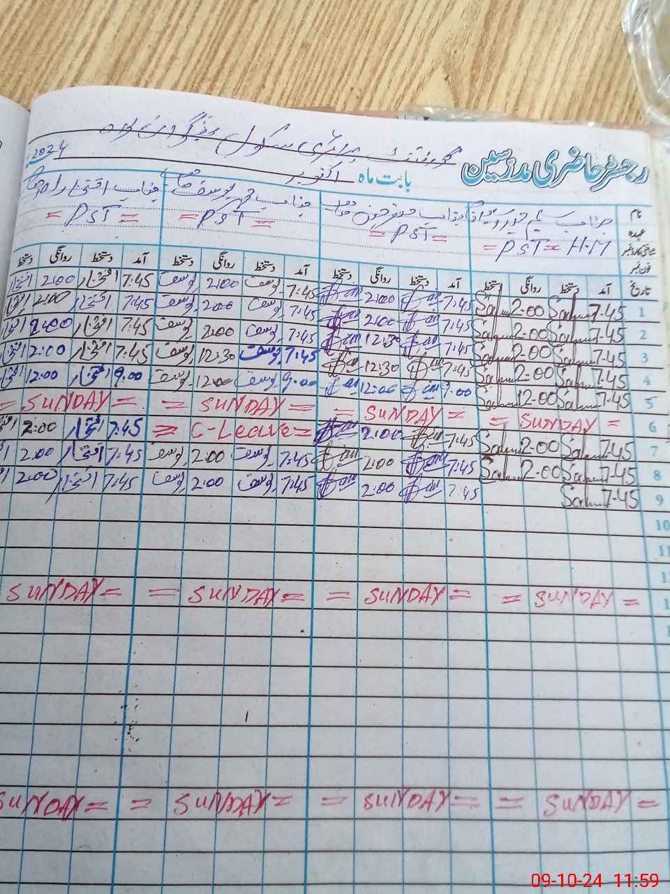 | CNIC | Full Name | Designation | R/C | Absence During Last Calender Month |