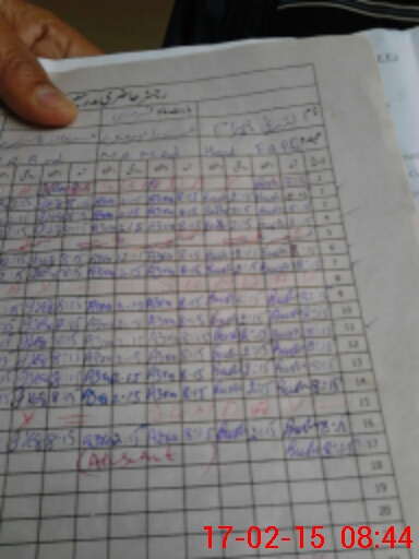 | Monitoring Date: 17-02-2015 | Start Time: 17-02-2015 08:25 AM | End Time: 17-02-2015 08:44 AM | Name of MEA: Mu**** Ah**** (R**** | |