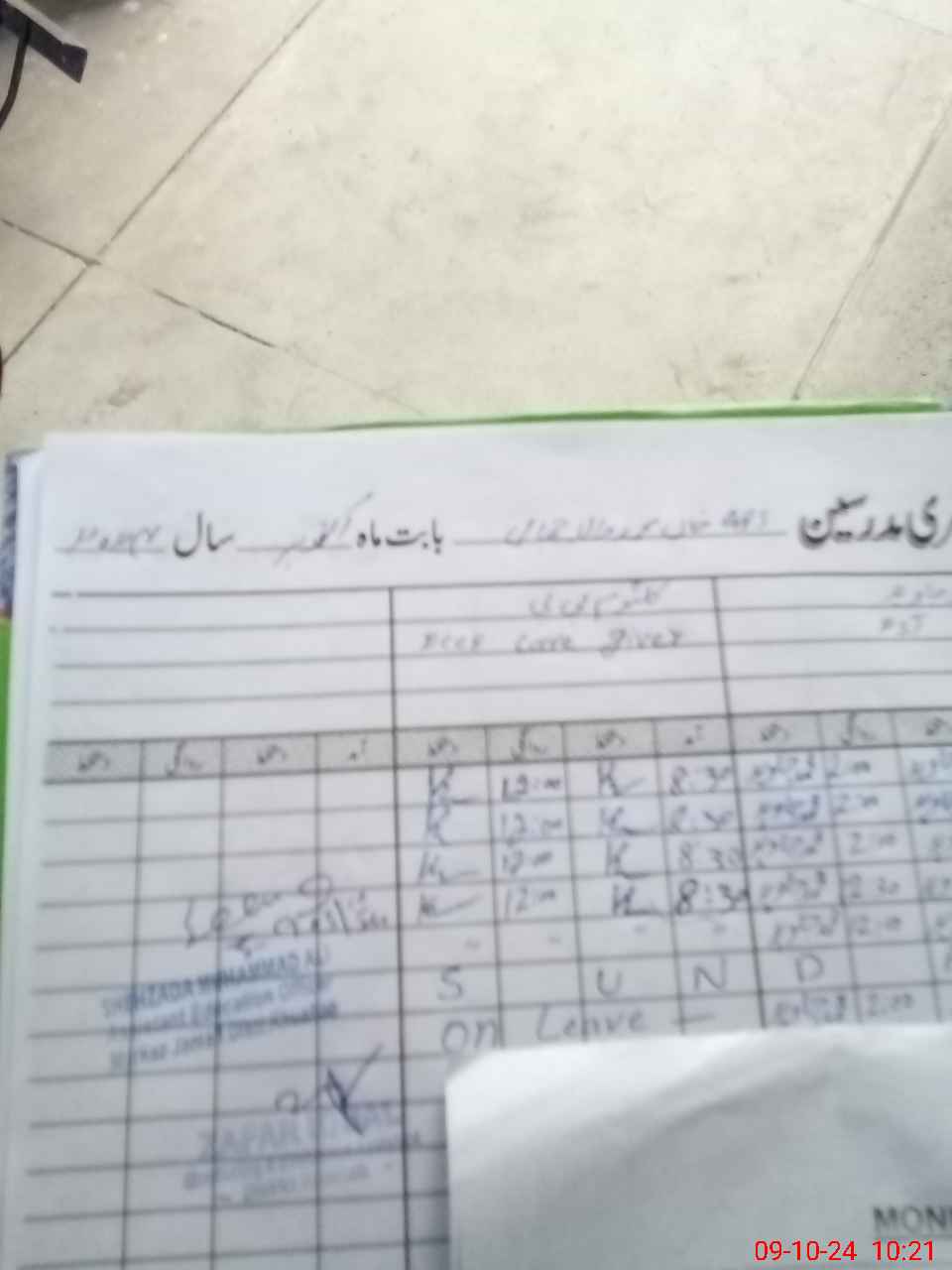 | CNIC | Full Name | Designation | R/C | Absence during last cal. month |