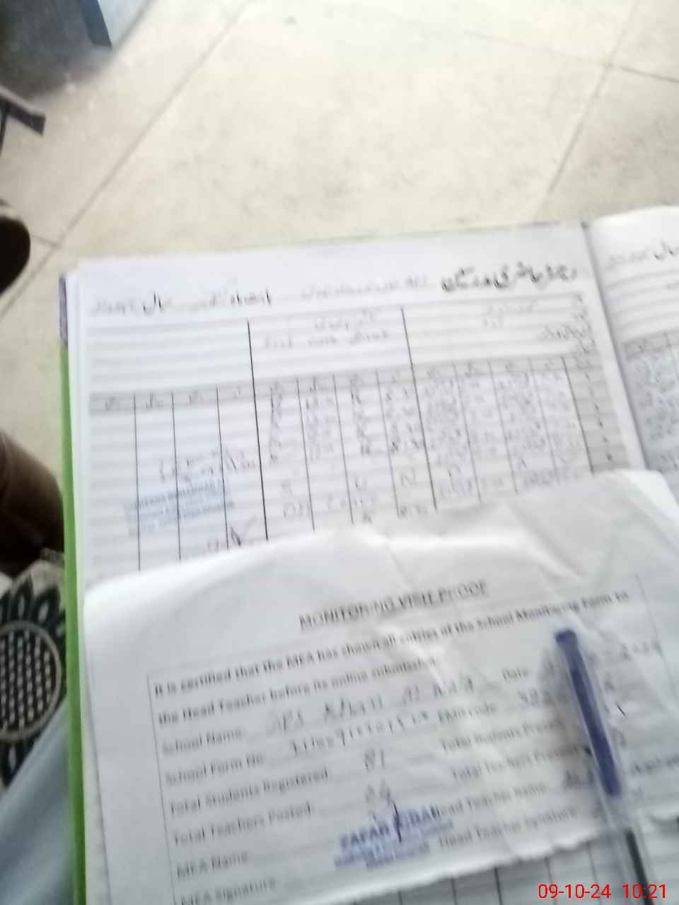 | Attendance Register | Head Teacher | MEA with School | Visit Proof |