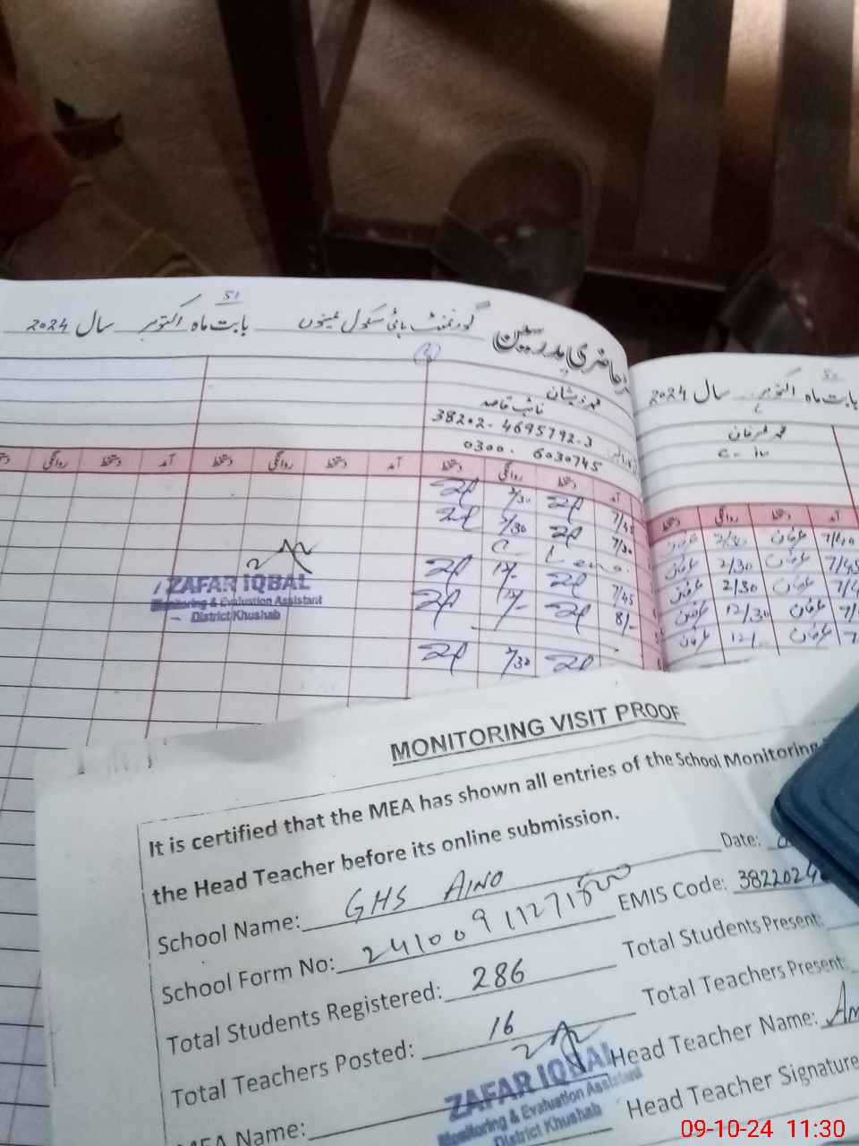 | EMIS Code: 38220246 | Name of School: GHS AINO | |||