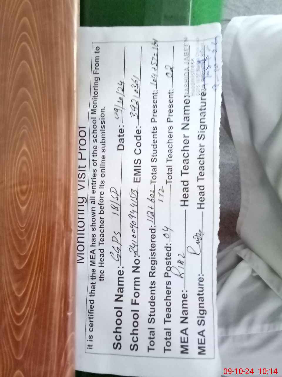 | EMIS Code: 39210361 | Name of School: GGPS CHAK 18 SP | |||