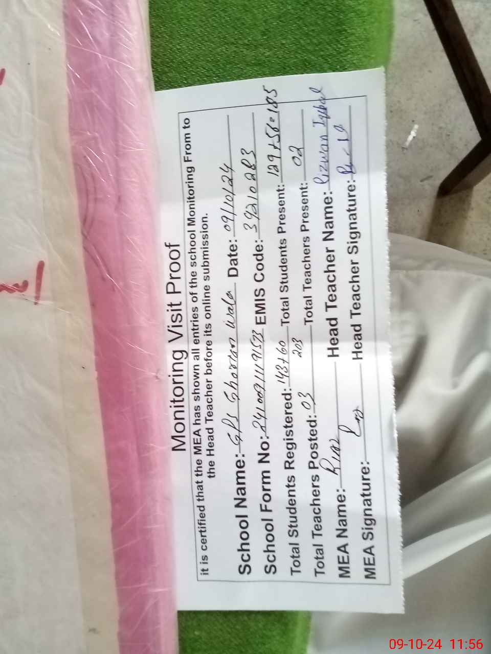 | EMIS Code: 39210283 | Name of School: GPS GHORIAN WALA | |||