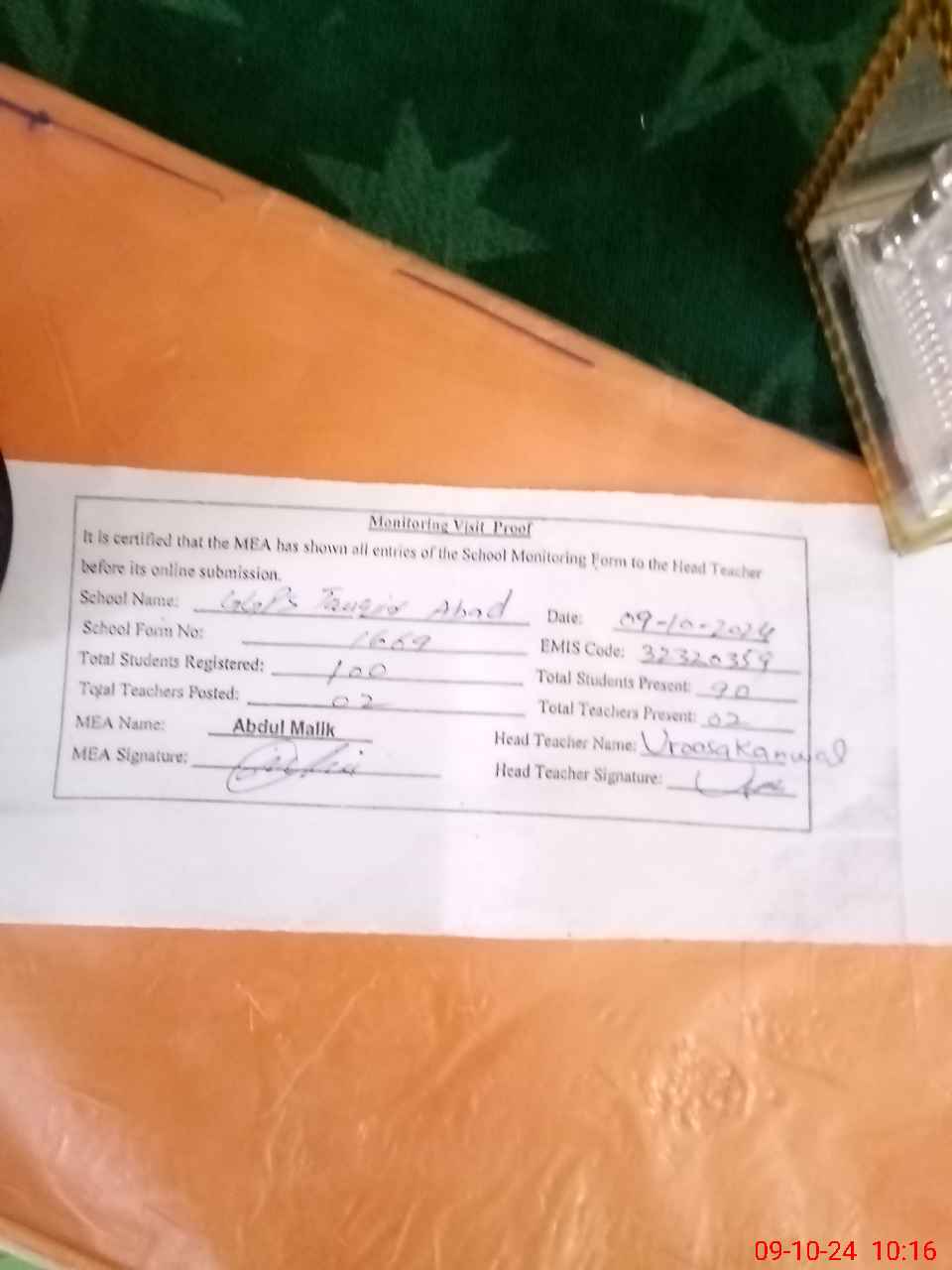 | EMIS Code: 32320359 | Name of School: GGPS TOUQEER ABAD | |||