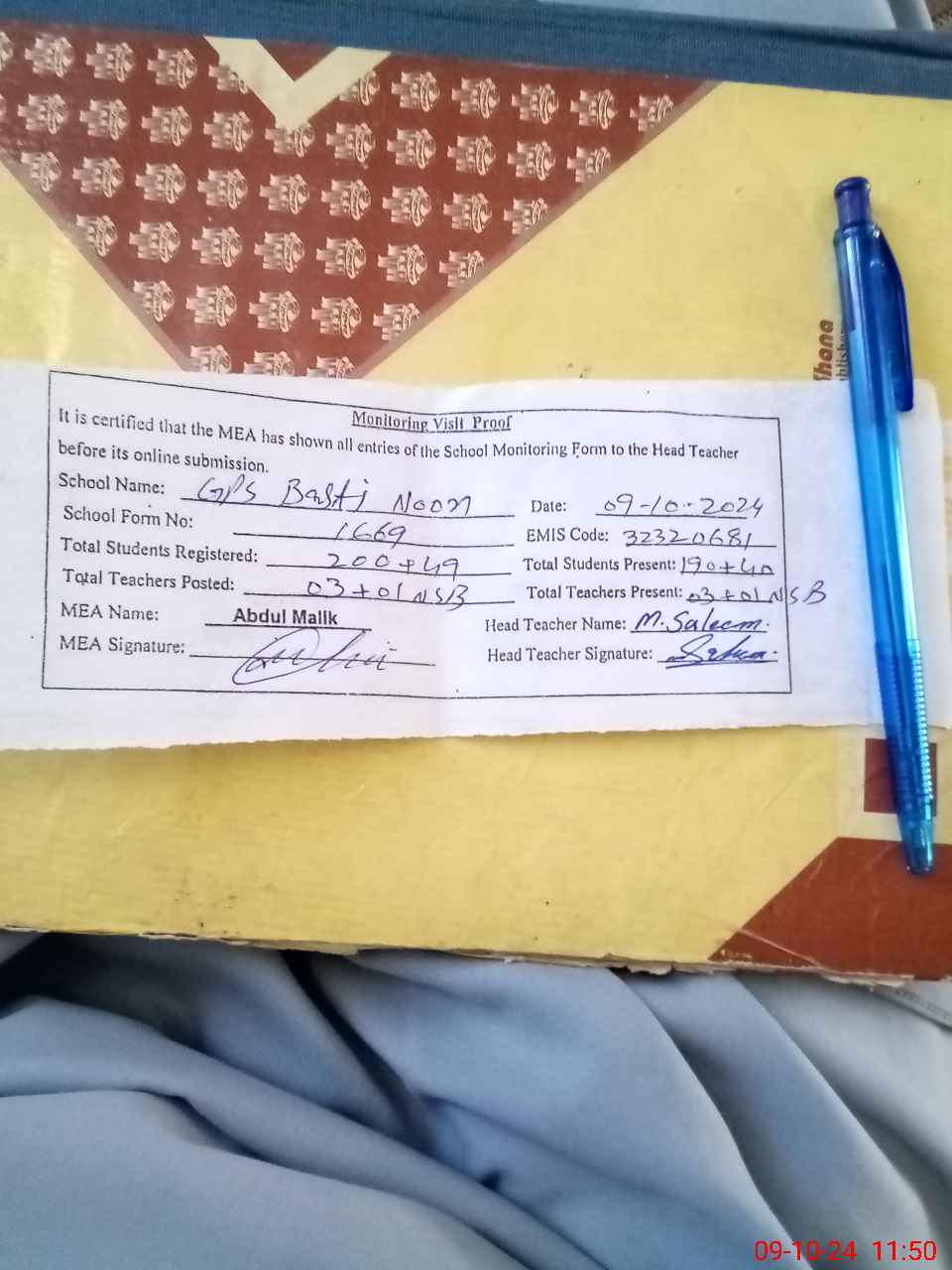 | EMIS Code: 32320681 | Name of School: GPS BASTI NOON | |||
