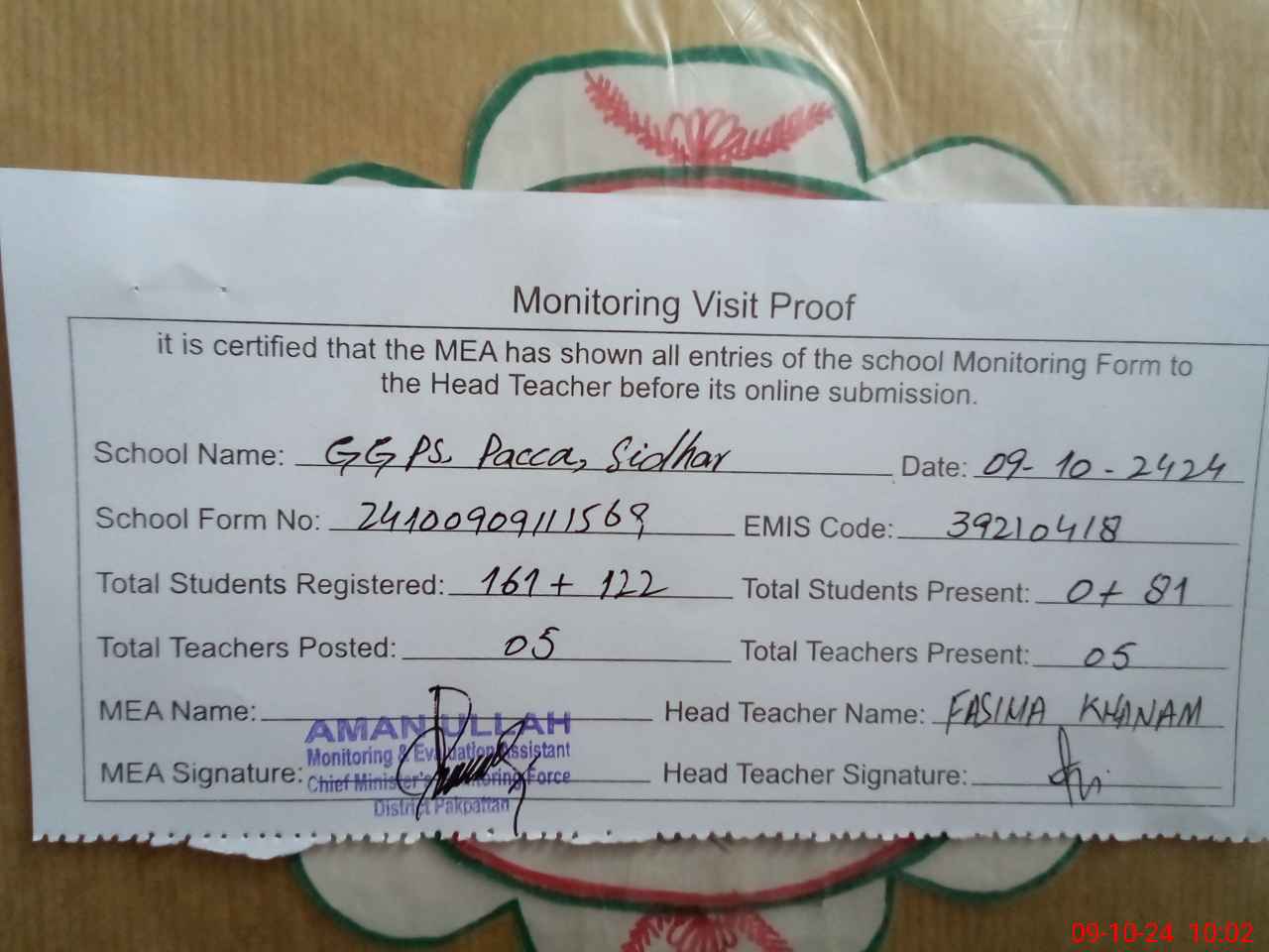 | EMIS Code: 39210418 | Name of School: GGPS PACCA SADHAR | |||
