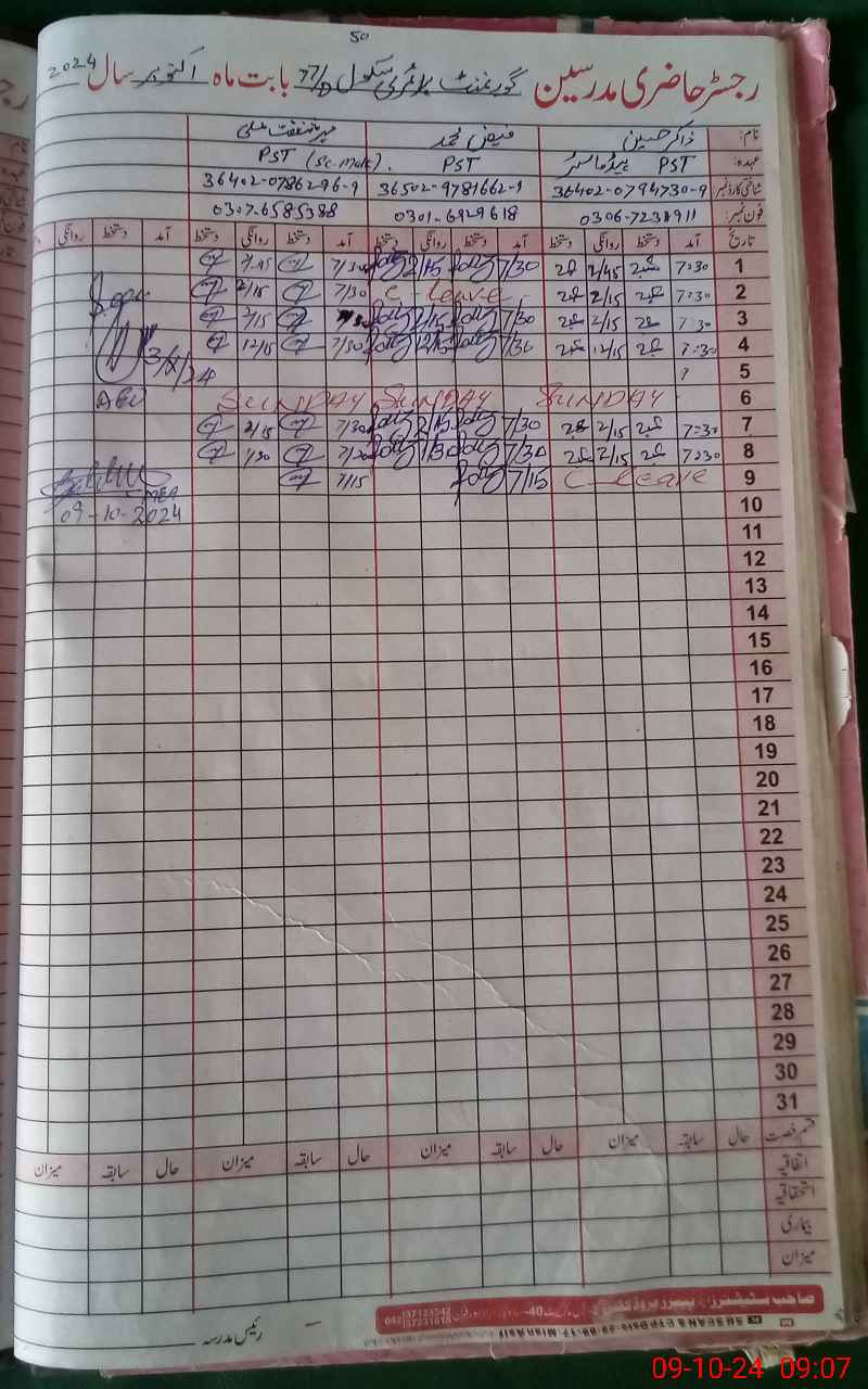 | Name: Fi**** Mu**** Designation: (School Headmaster's/Headmistress's) PST Phone/Cell Number: 03**** |