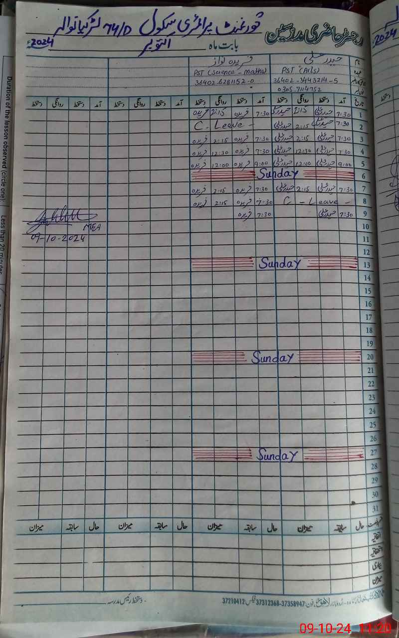| Name: HA**** AL**** Designation: (School Headmaster's/Headmistress's) PST Phone/Cell Number: 03**** |