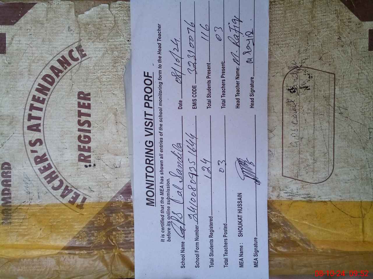 | EMIS Code: 32310076 | Name of School: GPS LAAL SANDILA | |||