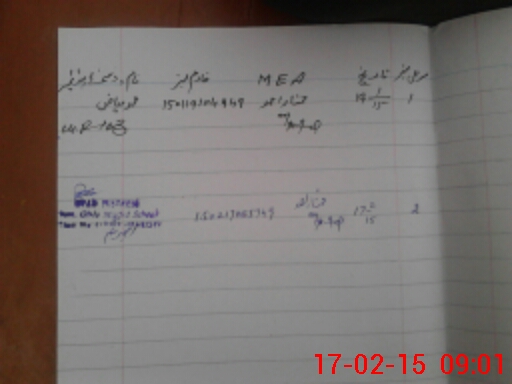 | Monitoring Date: 17-02-2015 | Start Time: 17-02-2015 08:49 AM | End Time: 17-02-2015 09:04 AM | Name of MEA: Mu**** ah**** BN**** 29 | |