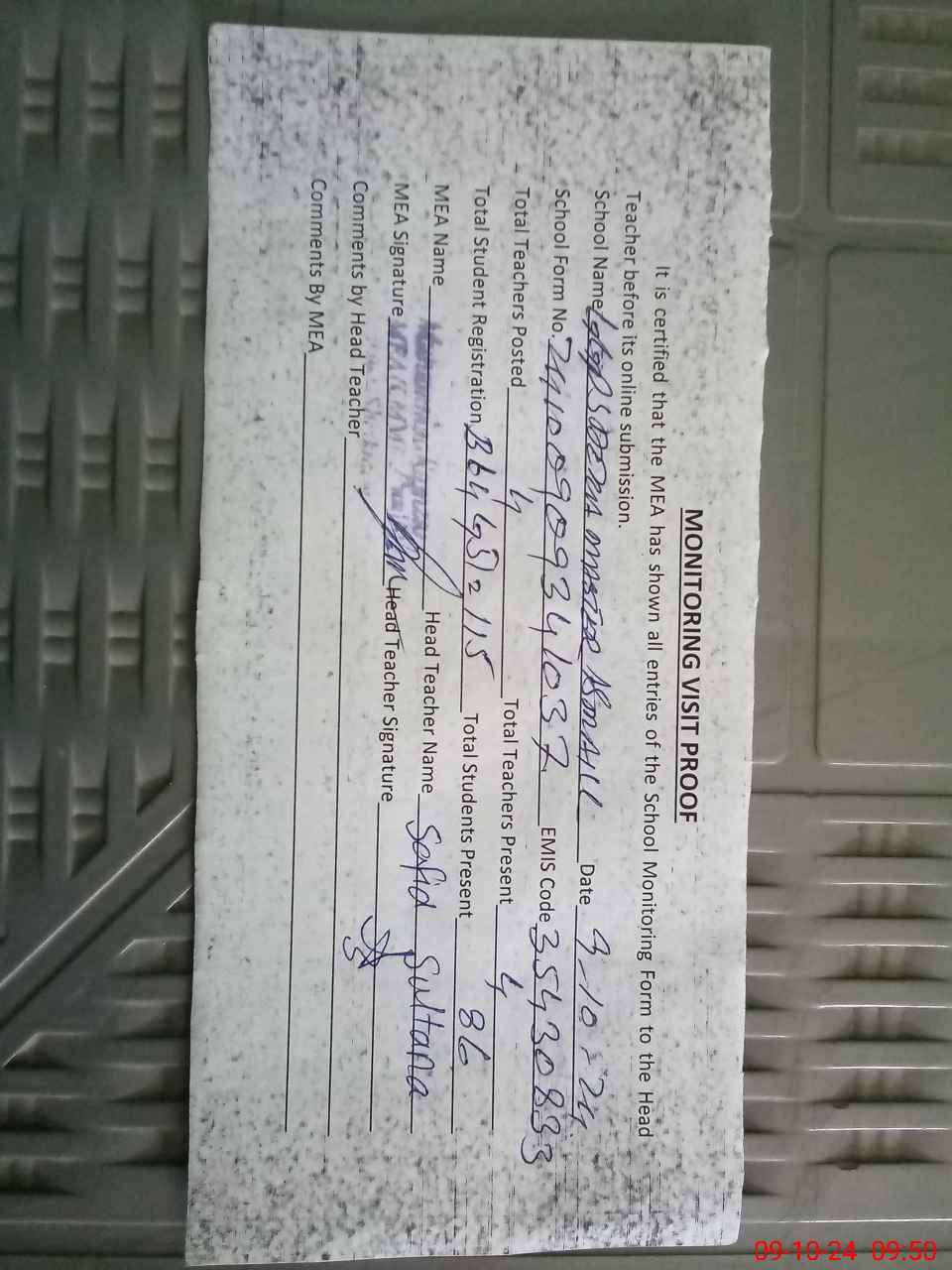 | Name: SA**** SU**** Designation: (School Headmaster's/Headmistress's) PST Phone/Cell Number: 03**** |