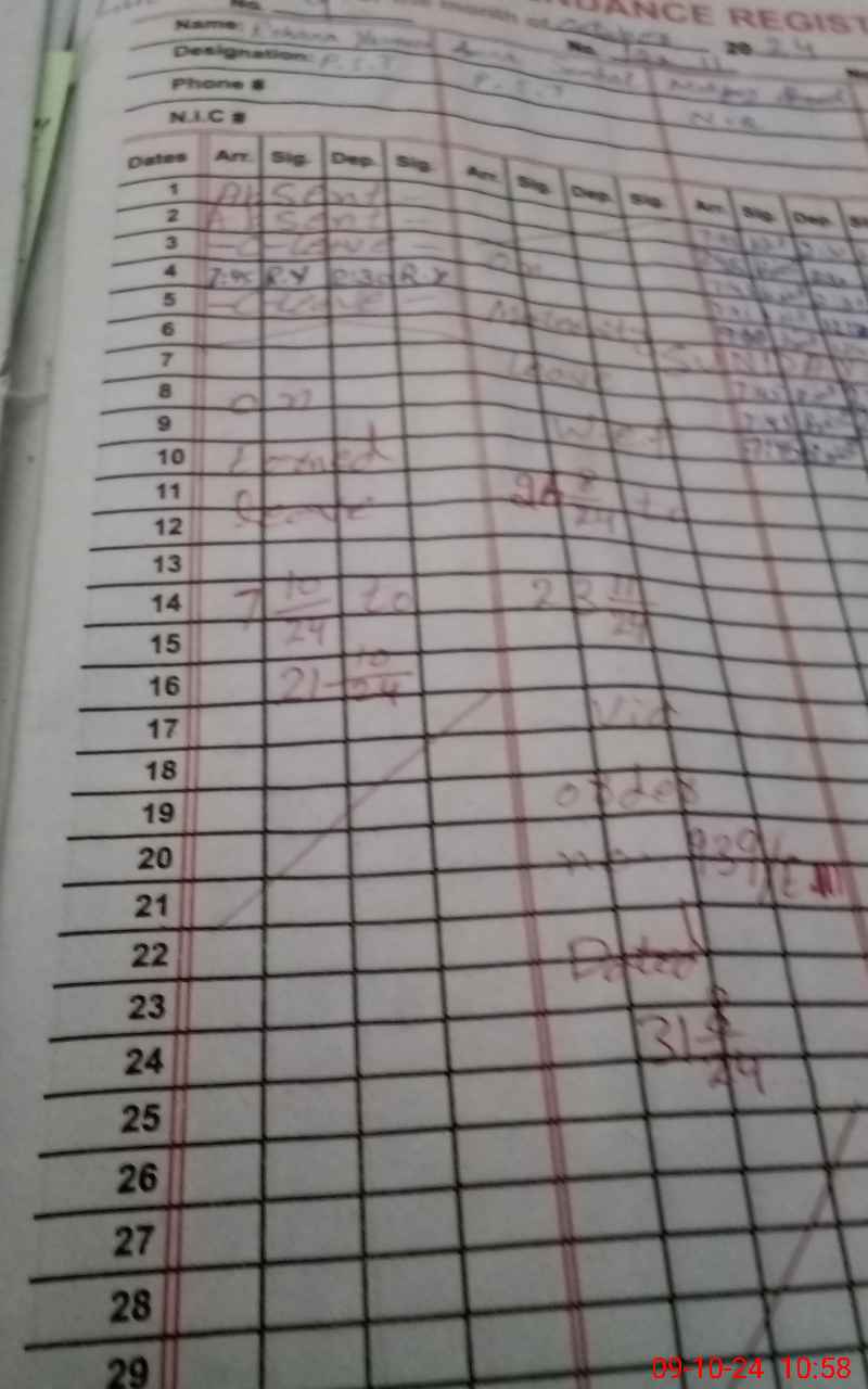 | 35**** | Ru**** Am**** | 3 | 1 | 0 | 0 | 0 | 0 | 0 | 0 | 0 | 0 | 0 | Absent (Un-Authorized) |