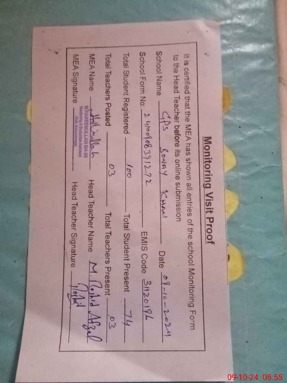 | EMIS Code: 31120196 | Name of School: GPS SONAY KHAN | |||