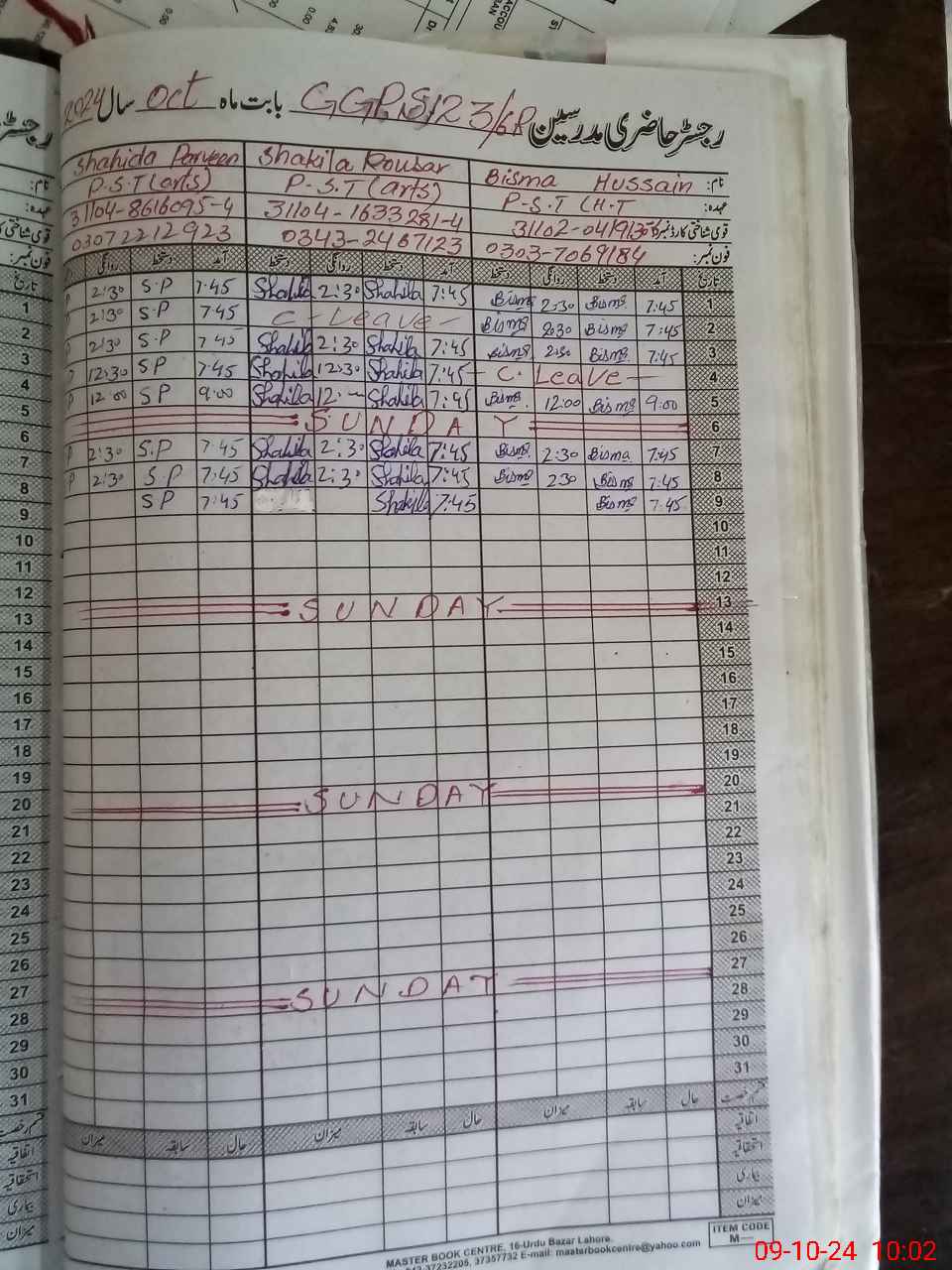 | CNIC | Full Name | Designation | R/C | Absence During Last Calender Month |