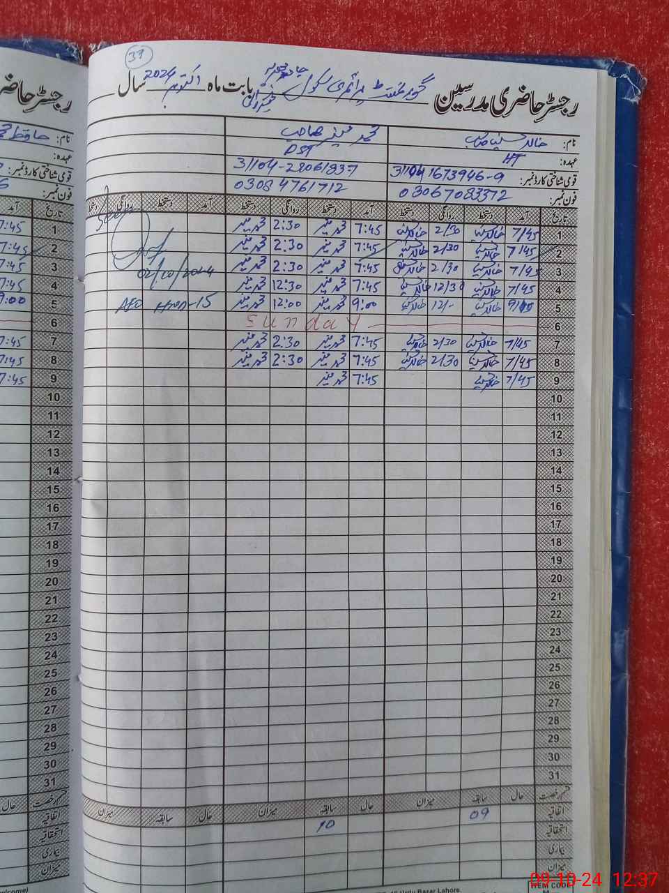 | Name: KH**** HU**** Designation: (School Headmaster's/Headmistress's) PTC Phone/Cell Number: 03**** |