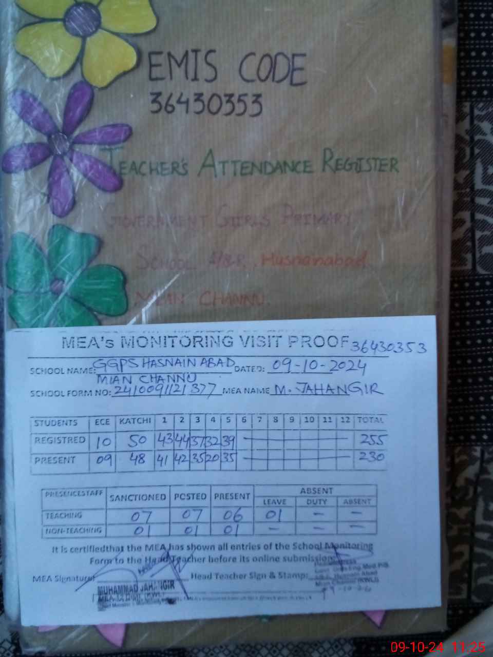 | Attendance Register | Head Teacher | MEA with School | Visit Proof |