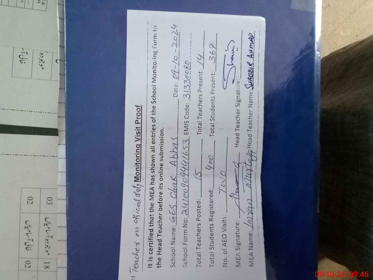 | EMIS Code: 31330080 | Name of School: GES CHAK ABBAS | |||