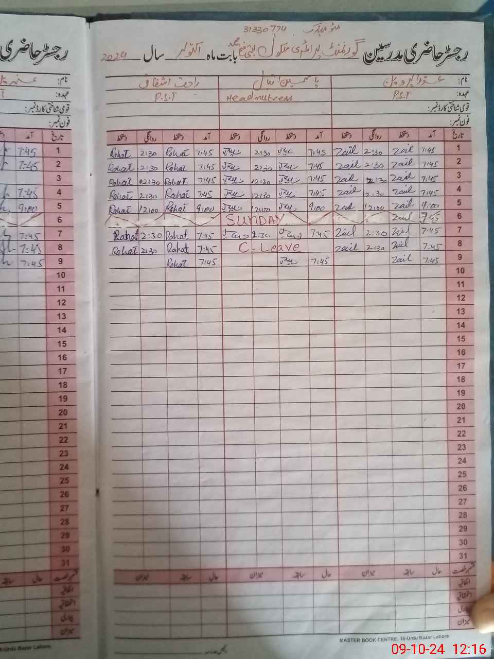 | Name: Ya**** Iq**** Designation: (School Headmaster's/Headmistress's) PST Phone/Cell Number: 03**** |