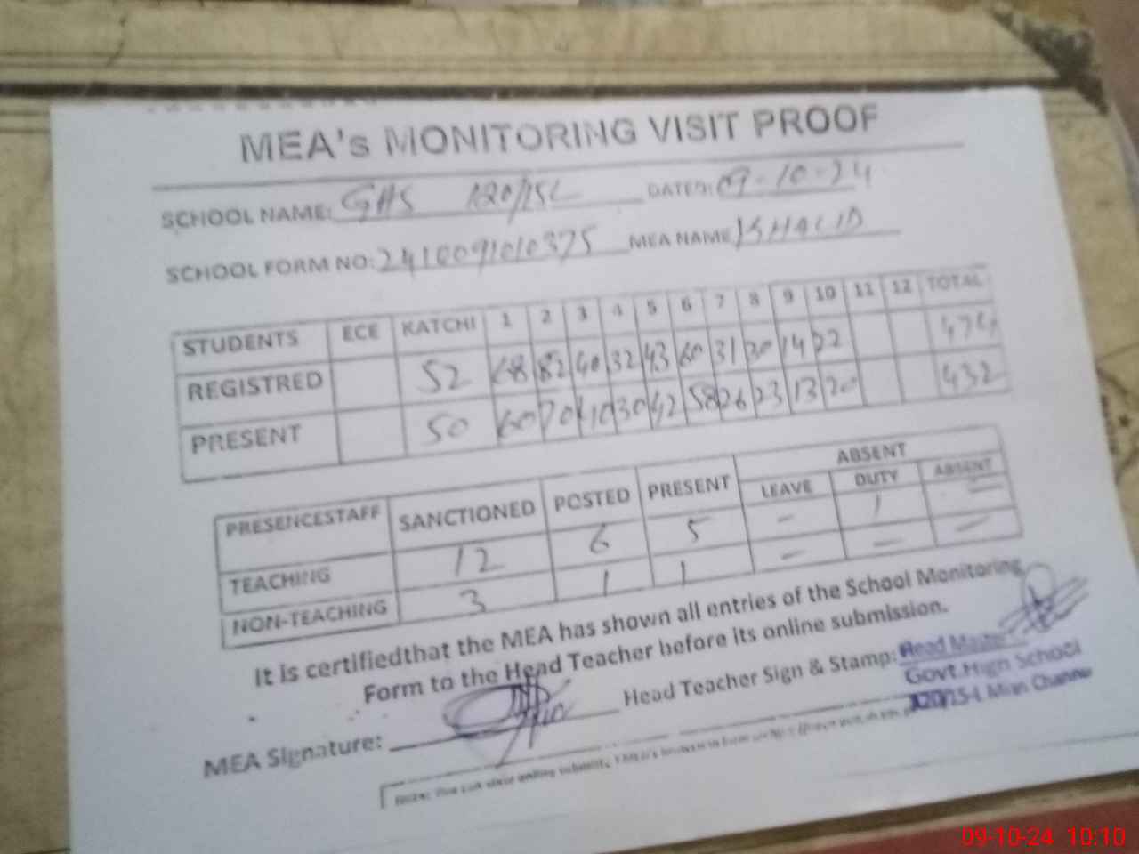 | EMIS Code: 36430211 | Name of School: GHS 120/15-L, MIAN CHANNU | |||
