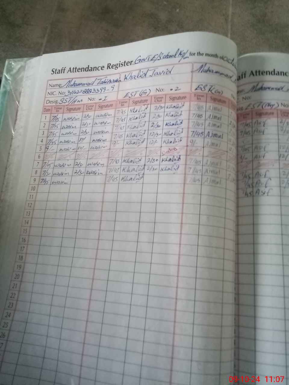 | CNIC | Full Name | Designation | R/C | Absence during last cal. month |
